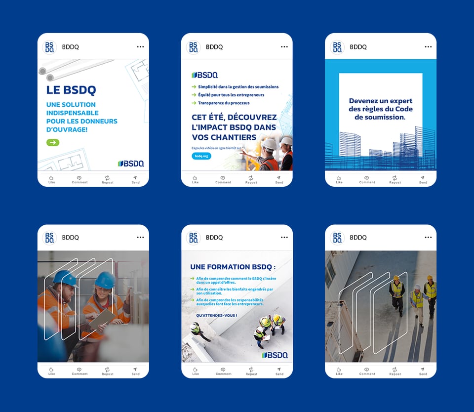 Pour répondre à un enjeu de méconnaissance et de réticence à l’adoption, nous avons conçu une stratégie à double impact : clarifier la mission et les bénéfices du BSDQ, puis stimuler l’utilisation concrète de ses outils et formations. L’objectif : repositionner l'organisme comme un acteur essentiel, accessible et pertinent de l’industrie.
