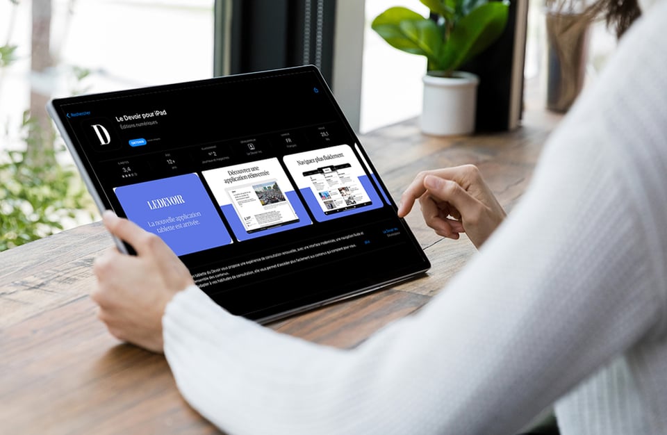 Notre équipe, via sa plateforme médias Omerlo, a accompagné Le Devoir dans le développement de ses applications iOS et Android, soit en élaborant un modèle inspiré de la lecture de magazines. Les éditions numériques sont structurées en sections thématiques, où chaque page est dédiée à un sujet précis, favorisant ainsi une immersion complète et une lecture naturelle, comparable à celle d’un livre. Cette approche permet aux lecteurs d’explorer l’ensemble des contenus avec fluidité, d'approfondir de nouveaux sujets et de découvrir l’actualité au sein d'un environnement clair, intuitif et engageant.